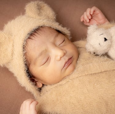 Nos especializamos en sesiones de new born, smash cake, y retratos familiares.
